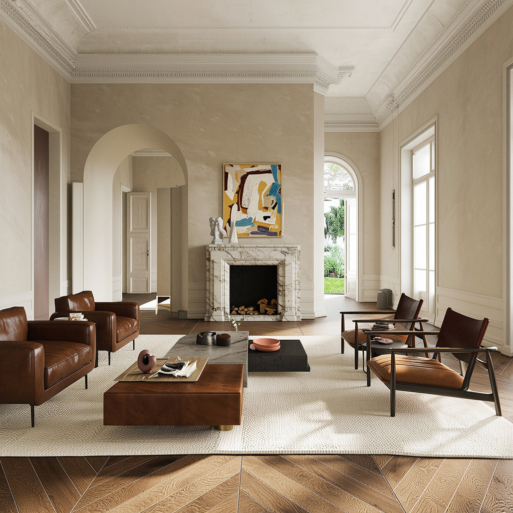 - 大量使用天然材质,如大理石、木质、皮革等。