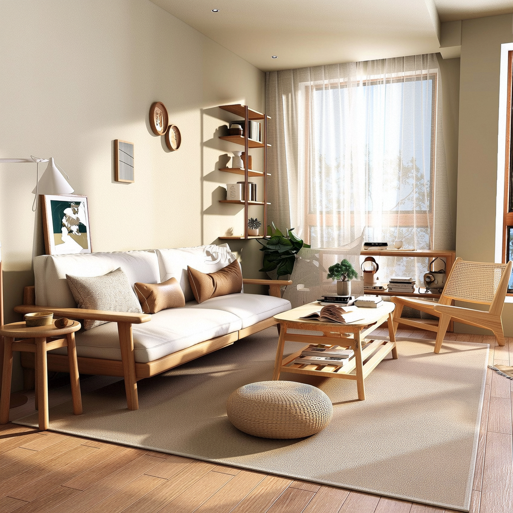 - 大量使用木质元素,如实木家具、木地板等,营造自然质朴的感觉。