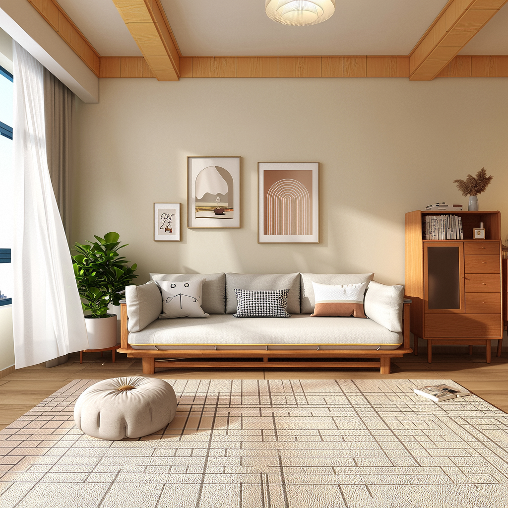 - 布艺选择以自然纤维为主,如亚麻、棉麻等。
