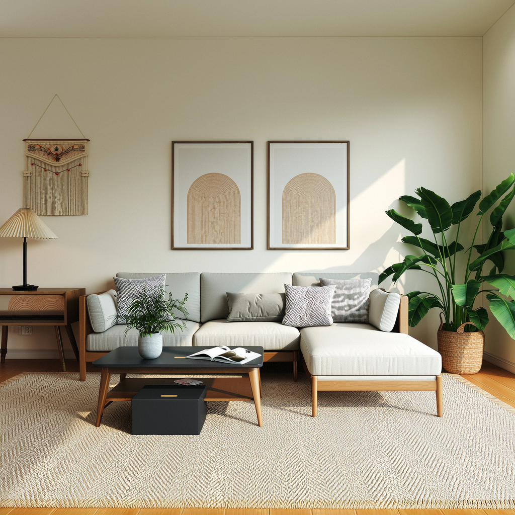 - 大量使用自然元素,如绿植、木质摆件、藤编装饰品等。