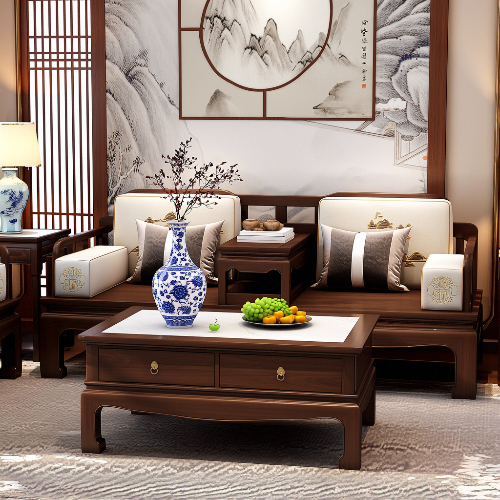 - 常见的家具有实木雕花家具、中式屏风、现代简约沙发等。