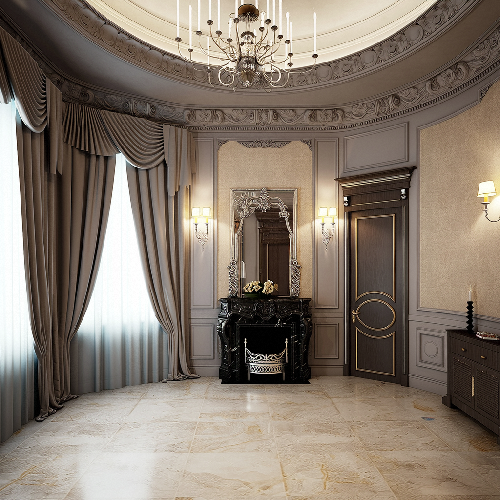 - 大量使用奢华装饰品,如水晶吊灯、金属壁画等。